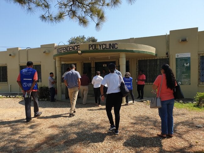 Isabel Palma, Independence Polyclinic, and Palm Centre Nursing Home were visited by the PAHO team, Ministry of Health staff (including the National Engineering and Maintenance Centre), and companies interested in bidding.