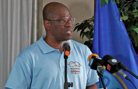 During the ceremony, Minister of Health, Wellness and Elderly Affairs, the Hon. Moses Jn. Baptiste, highlighted the link between vaccination access and strengthening the health care system.