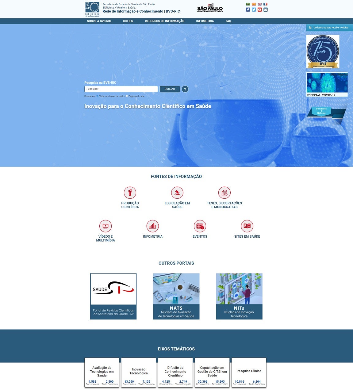 On October 20, the 15th anniversary of the Virtual Health Library Network of Information and Knowledge (RIC VHL) was held via web conference. The RIC VHL is the result of the Technical-Scientific Information Management Project carried out in 2006 by the São Paulo State Department of Health (SES-SP) in partnership with BIREME/PAHO/WHO, with the objective of contributing to the strengthening of information and scientific and technical knowledge in health management in the state of São Paulo, using the VHL model.