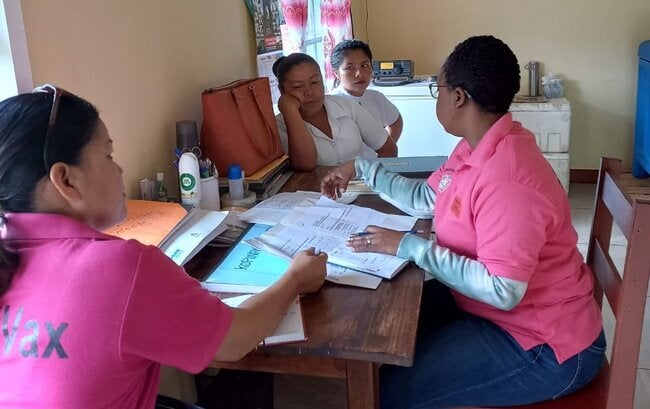 5 April 2023 (PAHO) – PAHO/WHO Guyana, Family and Community Health Unit, supported the Ministry of Health, Maternal, and Child Health Department in conducting field visits to health facilities at Kato, Karukabaru, and Kopinang, Region 8 (Potaro-Siparuni). The visit addressed equity issues regarding maternal and child health services and vaccination access in the Expanded Programme on Immunization.