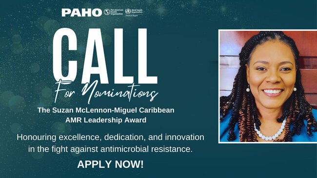 PAHO welcomes the nominations of individuals or organizations from across the Caribbean who have demonstrated outstanding commitment to addressing AMR. Eligible nominees may include those who have led impactful community-based AMR initiatives; contributed to education, policy, or public health solutions; or advanced research or innovation using a One Health lens. Self-nominations are encouraged.