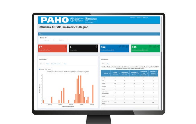 Between January 1 and December 31, 2024, the platform recorded 66 confirmed human cases in the United States and one in Canada, as well as over 1,300 outbreaks in animals in various countries across the region.