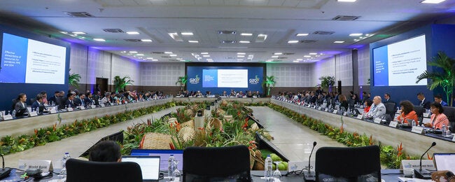 During the plenary sessions, PAHO called for collective, coordinated action to prepare, prevent and address the impact of climate change events on the health sector. The Organization also underscored the need for a climate change approach to health, with an equity focus, as well as for the involvement of the most impacted communities in this debate.