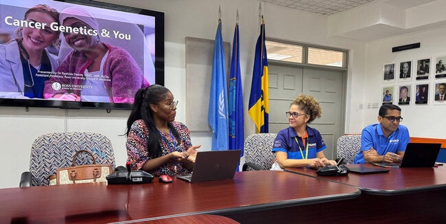 Bridgetown, Barbados, 31 October 2025 (PAHO) – As Breast Cancer Awareness month came to a close, the Pan American Health Organization (PAHO), in collaboration with the Ross University School of Medicine and UN Women, hosted an engaging wellness activity for staff, an awareness session titled “Cancer and Genetics: Understanding Your Risks, Empowering Your Health.”