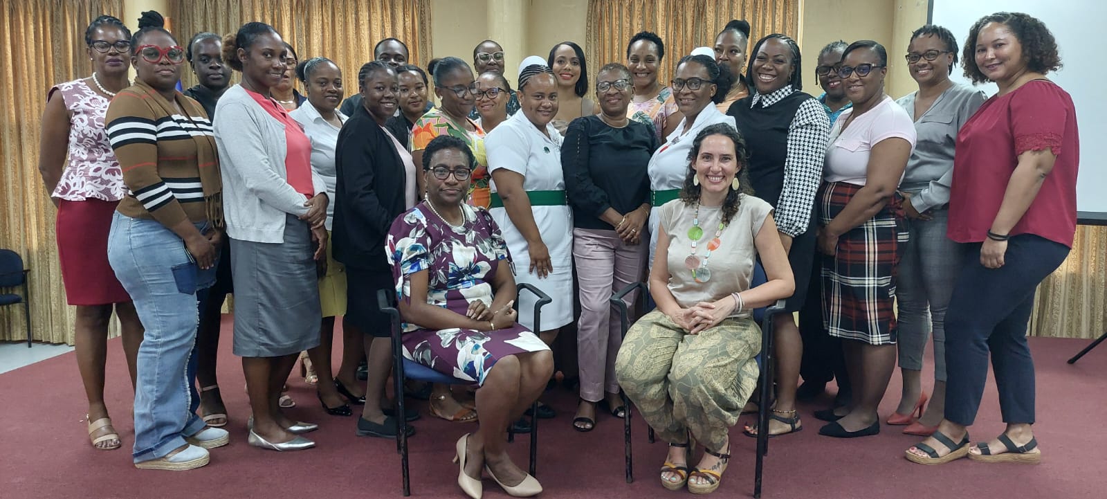 Over a ten-day period, PAHO facilitated three two-day training workshops with the participation of 53 health workers, including 45 nurses from all 36 health centres and four polyclinics, as well as eight staff members from the Community Nursing Services Office who oversee monthly immunisation data consolidation. The workshops combined theoretical components with hands-on practice, enabling participants to become familiar with all functional steps of the tool, from target estimation and calculation of vaccine requirements for outreach planning, monitoring and analysis of susceptible populations.