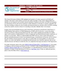 GENERAL INFORMATION BULLETIN GIB No.: HQ-16-720 Date: 12/27/2016 Entity: ETH Subject: PAHO Staff Conduct and Political Activities