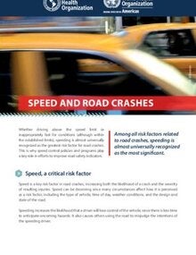 OverviewWhether driving above the speed limit or inappropriately fast for conditions (although within the established limits), speeding is almost universally recognized as the greatest risk factor for road crashes. This is why speed control policies and programs play a key role in efforts to improve road safety indicators. Among all risk factors related to road crashes, speeding is almost universally recognized as the most significant. |