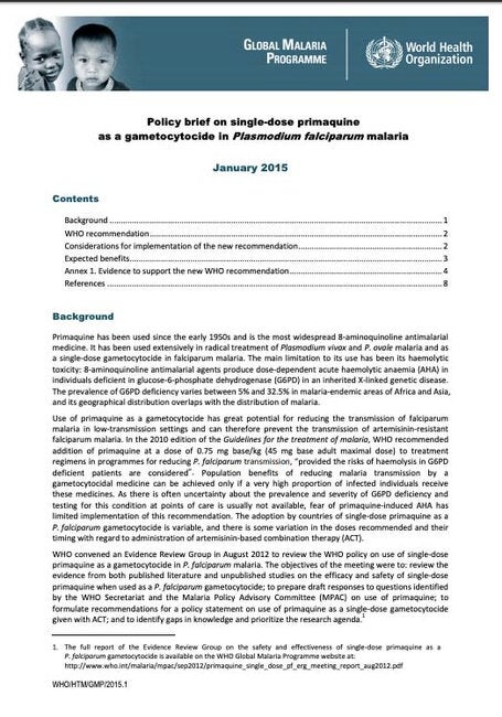 Malaria Vectors: Integrated management and public health entomology Policy briefs Communicable Disease Prevention, Control, and Elimination