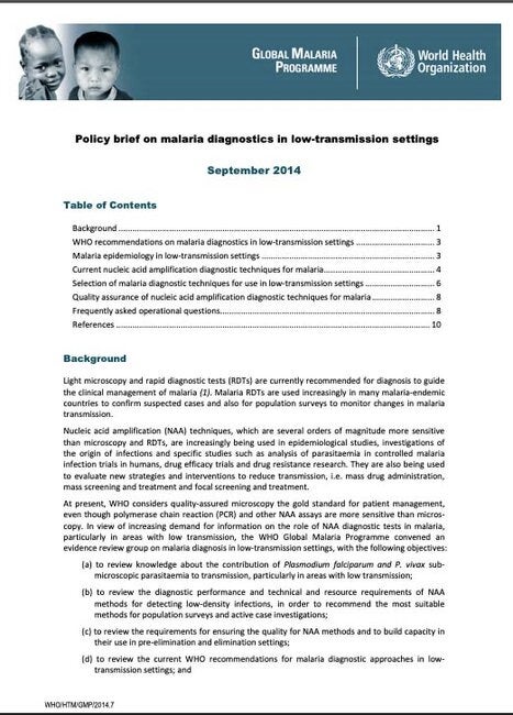 Policy brief on malaria diagnostics in low-transmission settings; September 2014