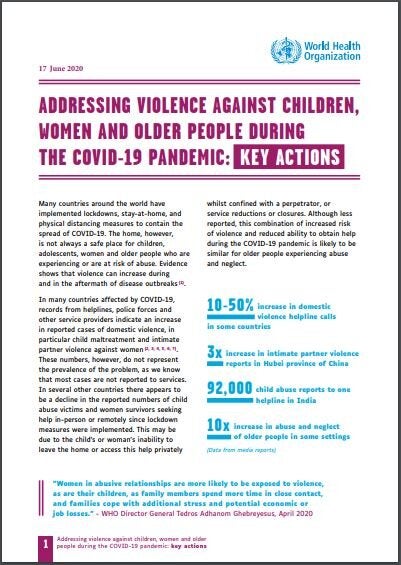 Coronavirus Disease (COVID-19) Violence against women Violence Prevention Violence against children Other publications