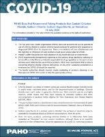 PAHO does not recommend oral or parenteral use of chlorine dioxide or sodium chlorite-based products for patients with suspected or diagnosed COVID-19 or for anyone else. There is no evidence of their effectiveness and the ingestion or inhalation of such products could cause serious adverse effects.