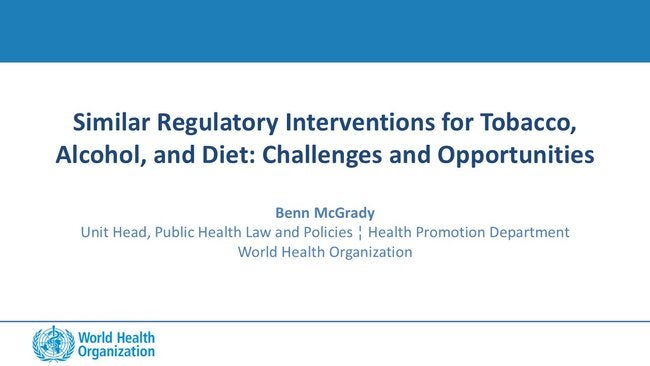 Similar Regulatory Interventions for Tobacco, Alcohol, and Diet: Challenges and Opportunities - Benn McGrady