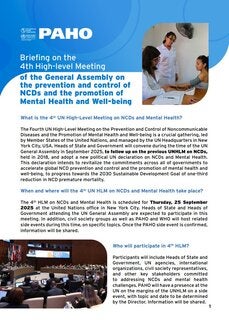 PAHO is actively involved in the preparatory process for HLM4, coordinating with the global activities led by WHO headquarters. In 2024, virtual meetings were held with national NCD program managers to review progress towards the NCD targets, and in March 2025, a regional NCD meeting will be held with national NCD program managers to continue to discuss how to accelerate progress towards the NCD targets.