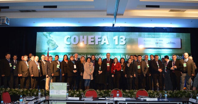 The Hemispheric Committee for the Eradication of Foot-and-Mouth Disease (COHEFA by its initials in Spanish) was established by Resolution XIII of the 5th Inter-American Meeting, at the Ministerial Level, on Animal Health (RIMSA V), held in Washington, DC, on April 27-30, 1987, through the Pan American Foot-and-Mouth Disease Center (PANAFTOSA-PAHO/WHO), acts as Technical Secretary of the Committee.