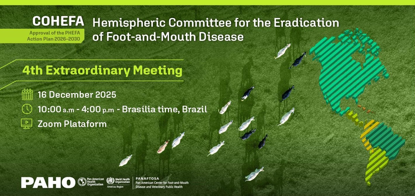 The 4th Extraordinary Meeting of the Hemispheric Committee for the Eradication of Foot-and-Mouth Disease (COHEFA) will be held virtually on 16 December 2025.