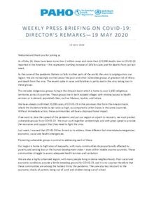 Weekly Press Briefing on COVID-19: Director’s Opening Remarks, May 19, 2020