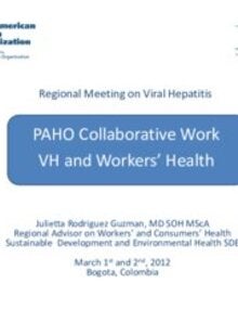 PAHO Collaborative Work VH and workers’ health; 2012 (sólo en inglés)