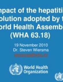 Presentation: Impact of the hepatitis resolution adopted by the World Health Assembly- WHA 63.18; 2010