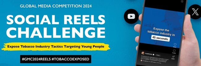 The Global Media Competition is looking for compelling social media short video reels that uncover the tobacco industry's deceptive tactics and highlight effective laws protecting children from its harmful influence. We're inviting entries from those 35 years old and under to recognize a ‘for youth by youth’ approach.
