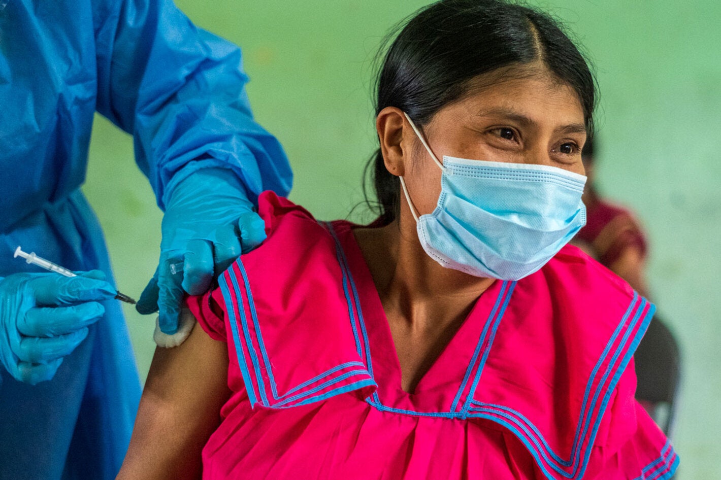 COVID-19 vaccination in a school in the community of Coclesito, in the indigenous territory of Ngäbe Buglé, Panama, in October 2021. (Gerardo Cárdenas/PAHO)