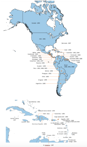 - All 51 countries and territories in the Americas have introduced hepatitis B vaccine (or hepatitis B containing vaccine) in their routine immunization schedules, with 81% of regional coverage with three doses among children less than one year of age in 2019.