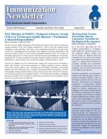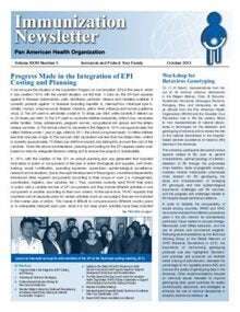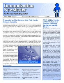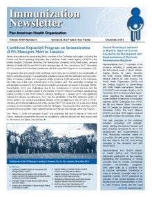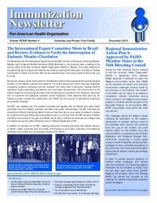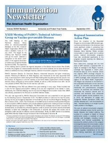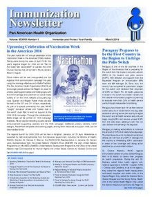 The Immunization Newsletter is published in Spanish, English and French by the Comprehensive Family Immunization Unit of the Pan American Health Organization (PAHO), Regional Office for the Americas of the World Health Organization (WHO). Its purpose is to facilitate the exchange of ideas and information concerning immunization programs in the Region, in order to promote greater knowledge of the problems faced and their possible solutions. Prior to 2015, the Immunization Newsletter was published every two months, but it is currently being published quarterly.