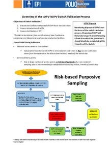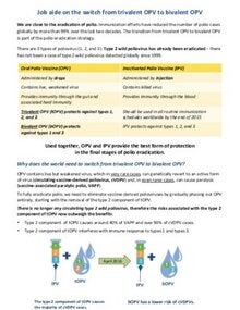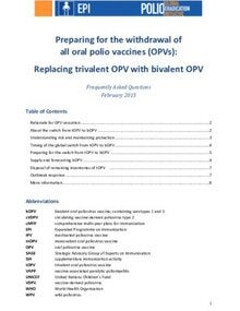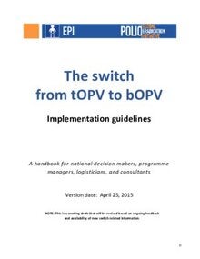 The switch from the trivalent oral polio vaccine (tOPV) to the bivalent oral polio vaccine (bOPV) will be a globally coordinated process and is scheduled to occur in April 2016. After this date, no manufacturers will produce or distribute tOPV, and any use of tOPV may jeopardize polio eradication due to the possible generation of circulating vaccine-derived polioviruses.