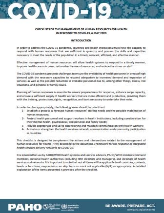 Checklist for the Management of Human Resources for Health in Response to COVID-19