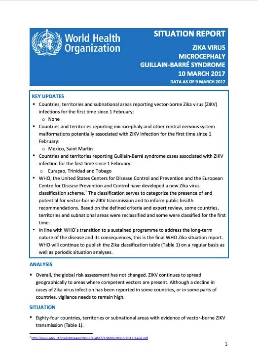 Zika Situation Report: Zika virus, Microcephaly and Guillain-Barré syndrome (10 March 2017)