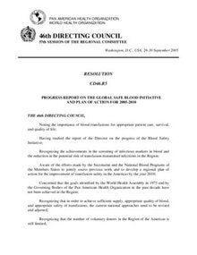 - Engages in technical cooperation with national blood programs in the Region of the Americas to ensure that they have sufficient quantities of safe blood to provide timely transfusions to all patients who need them.