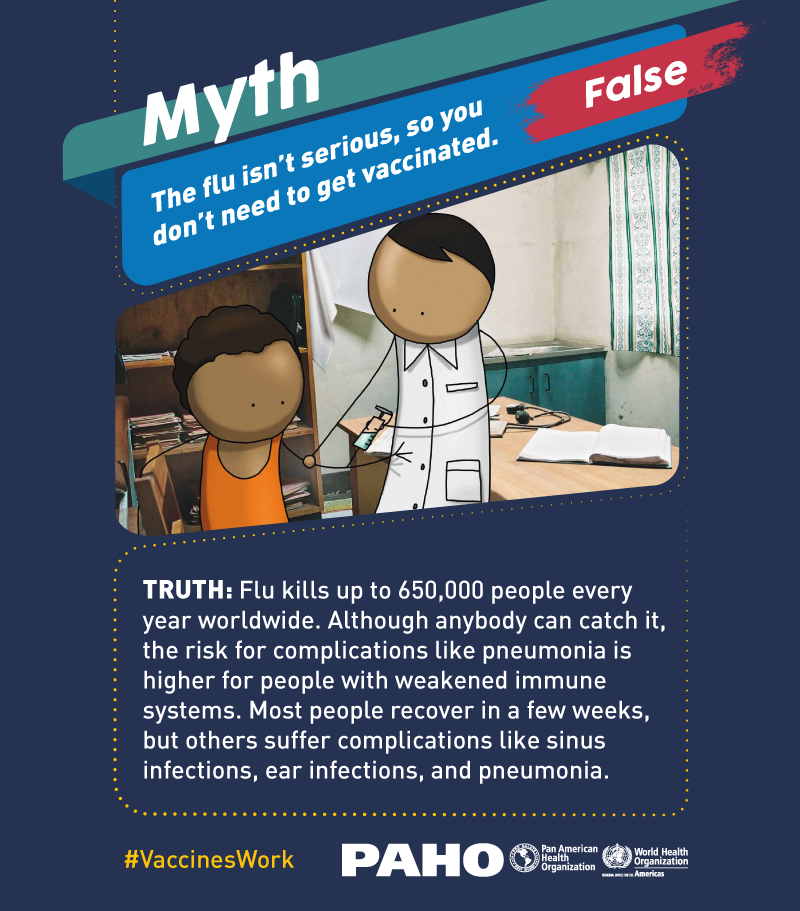The most effective way to prevent serious complications from influenza is through vaccination. Although there is a moderately effective vaccine - given the continuous variation of circulating viruses that means the vaccine needs to be updated annually - it is estimated that only half of the population at risk receives the flu vaccine each year in the countries of the region that report data.