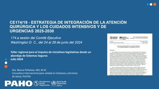 In his speech, Dr. Lee Wallis, Head of Emergency Care in the Clinical Services and Systems Unit of the WHO Department of Integrated Health Services, highlighted various mandates received within the framework of the World Health Assembly and the tools being developed by WHO to support the strengthening and integration of emergency care, critical care, and surgical services. He also commented on some of the progress that has been coordinated in the Region.