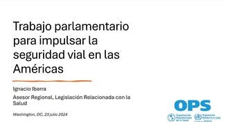 Dr. Ignacio Ibarra, Regional Advisor on Health-Related Legislation and Technical Secretary of the Parliamentary Network for Road Safety in the Americas, shared with participants the progress on developing a Regional Repository of road safety-related legislation. This is a key issue that has the potential to support parliamentary work in the region.