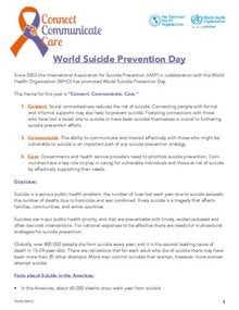 Suicide is a major public health issue still surrounded by stigma, myths, and taboos. Every suicide is a tragedy that affects not only individuals but also families and communities. In 2021, an estimated 727,000 people worldwide lost their lives to suicide. The Region of the Americas is the only WHO Region where suicide rates have increased. The fifth regional report, Suicide in the Americas (September 2025), provides the most up-to-date epidemiological data on suicide for all countries and subregions, offering valuable insights to address this challenge.