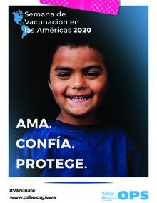 Del 25 de abril al 2 de mayo del 2020, la Región de las Américas celebrará la 18ª campaña de la Semana de Vacunación en las Américas (SVA), con el lema "Ama. Confía. Protege. #Vacúnate". La campaña de este año quiere traer a la mente el amor que las personas tienen por sus hijos, por sí mismos y por sus comunidades; la confianza en la capacidad de las vacunas para salvar vidas; y la protección que proporcionan contra enfermedades para todos, en todas partes.