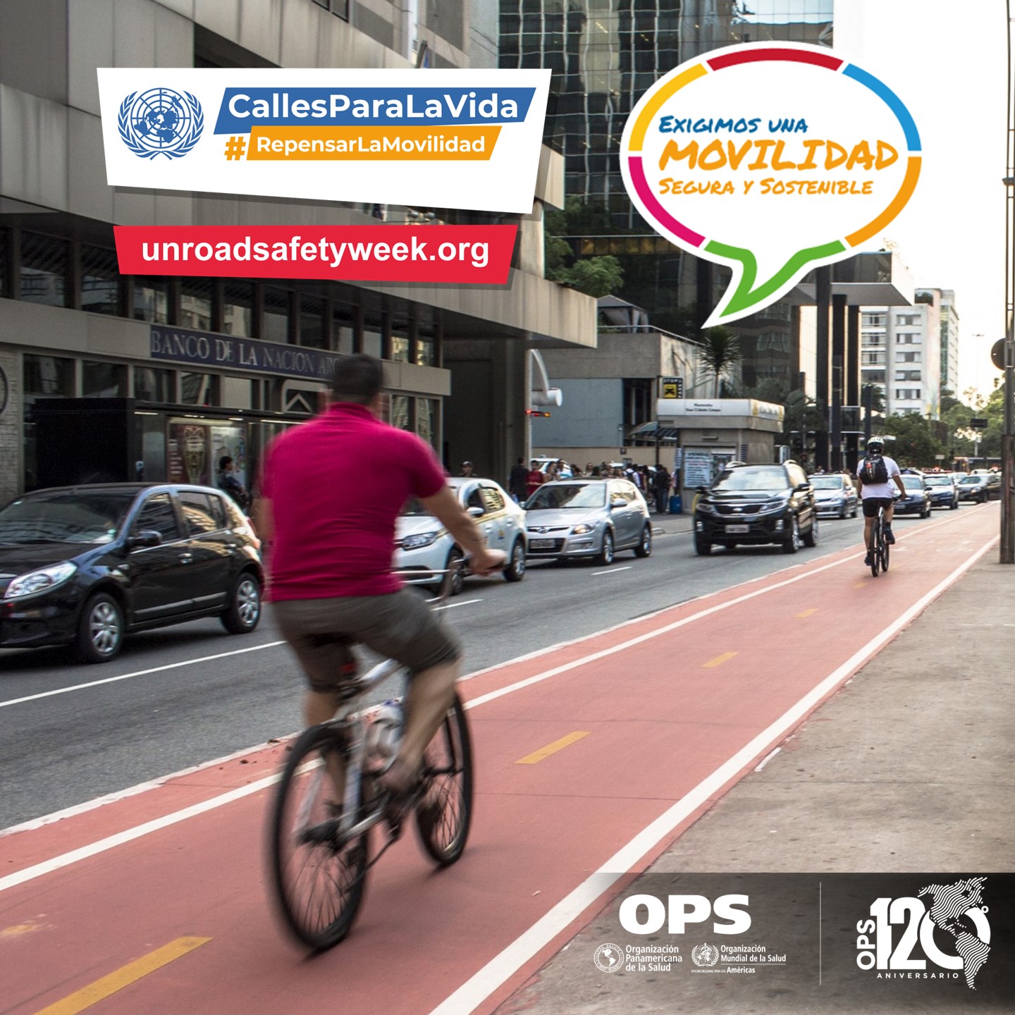 La OPS/OMS emplaza a todos los asociados en materia de seguridad vial y movilidad sostenible a celebrar la Séptima Semana Mundial de las Naciones Unidas para la Seguridad Vial organizando actos y actividades y compartiendo materiales y mensajes en las redes sociales con las siguientese hashtags: