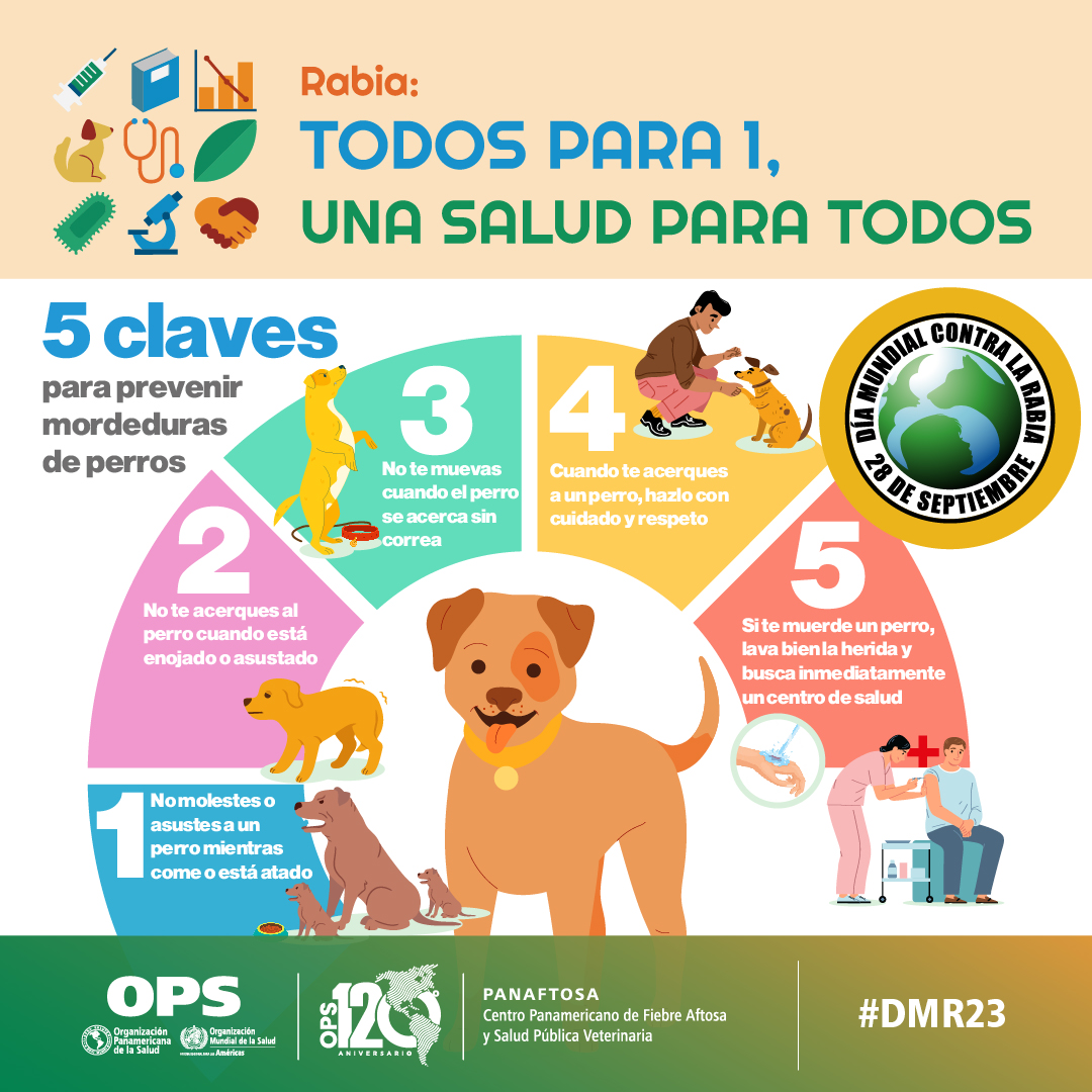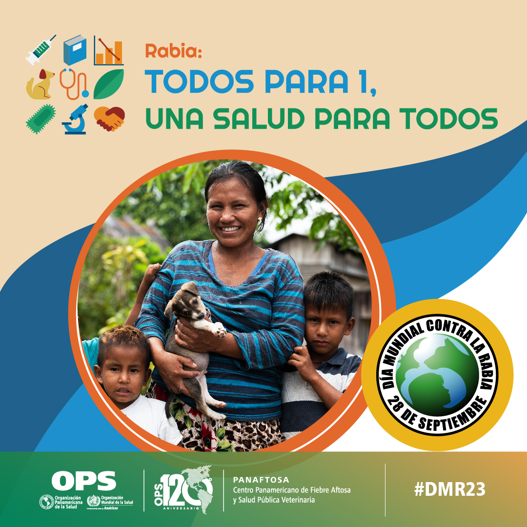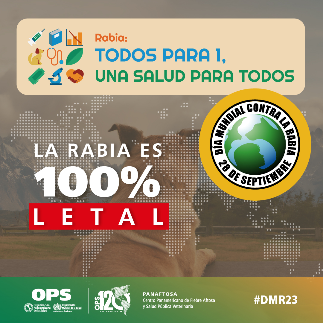 El Día Mundial contra la Rabia (DMR), establecido por la Alianza Global para el Control de la Rabia (GARC) y reconocido por la Organización Mundial de la Salud (OMS) cada 28 de septiembre es una jornada trascendental para promover la lucha contra esta enfermedad y reforzar la concientización sobre su prevención. La rabia es una enfermedad zoonótica con una tasa de letalidad del 100%. Endémica en varios continentes, se estima que cada año mueren alrededor de 60.000 personas en el mundo por su causa, el 40% niños. La eliminación de la rabia humana transmitida por perros es posible, el avance de muchos países de la región de las Américas en este logro es muestra de ello. El lema de este año "Todos para 1, Una Salud para Todos" destaca la necesidad de implementar un abordaje intersectorial y multidisciplinar con el aporte, intervención y cooperación de equipos profesionales de los sectores de la salud humana, animal y ambiental.