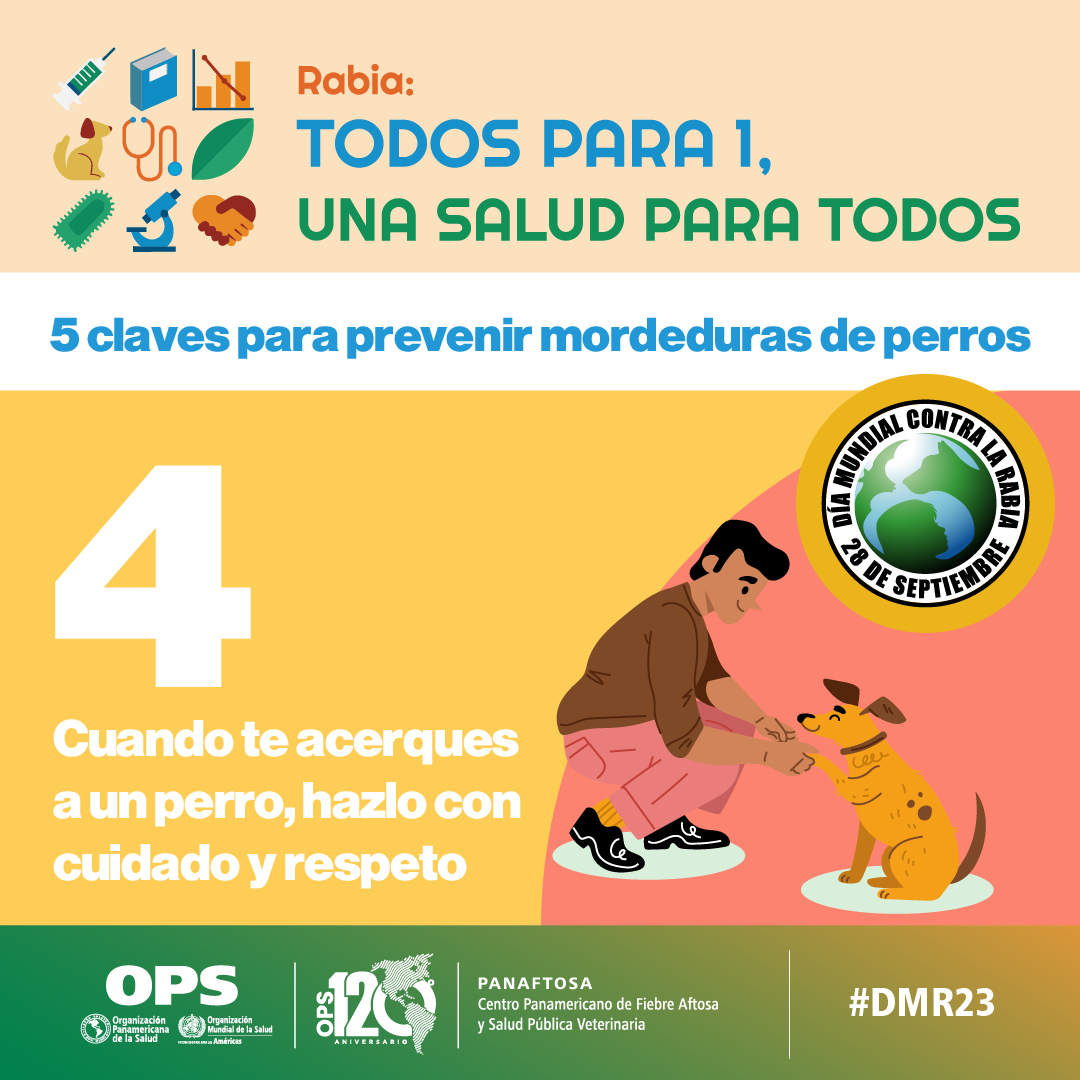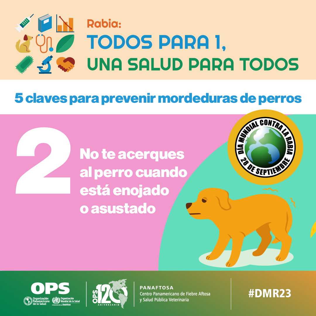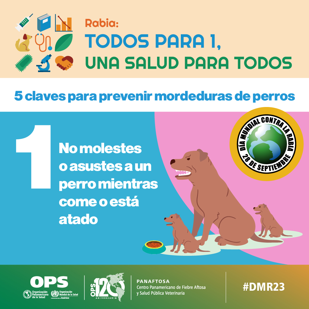 El Día Mundial contra la Rabia (DMR), establecido por la Alianza Global para el Control de la Rabia (GARC) y reconocido por la Organización Mundial de la Salud (OMS) cada 28 de septiembre es una jornada trascendental para promover la lucha contra esta enfermedad y reforzar la concientización sobre su prevención. La rabia es una enfermedad zoonótica con una tasa de letalidad del 100%. Endémica en varios continentes, se estima que cada año mueren alrededor de 60.000 personas en el mundo por su causa, el 40% niños. La eliminación de la rabia humana transmitida por perros es posible, el avance de muchos países de la región de las Américas en este logro es muestra de ello. El lema de este año "Todos para 1, Una Salud para Todos" destaca la necesidad de implementar un abordaje intersectorial y multidisciplinar con el aporte, intervención y cooperación de equipos profesionales de los sectores de la salud humana, animal y ambiental.