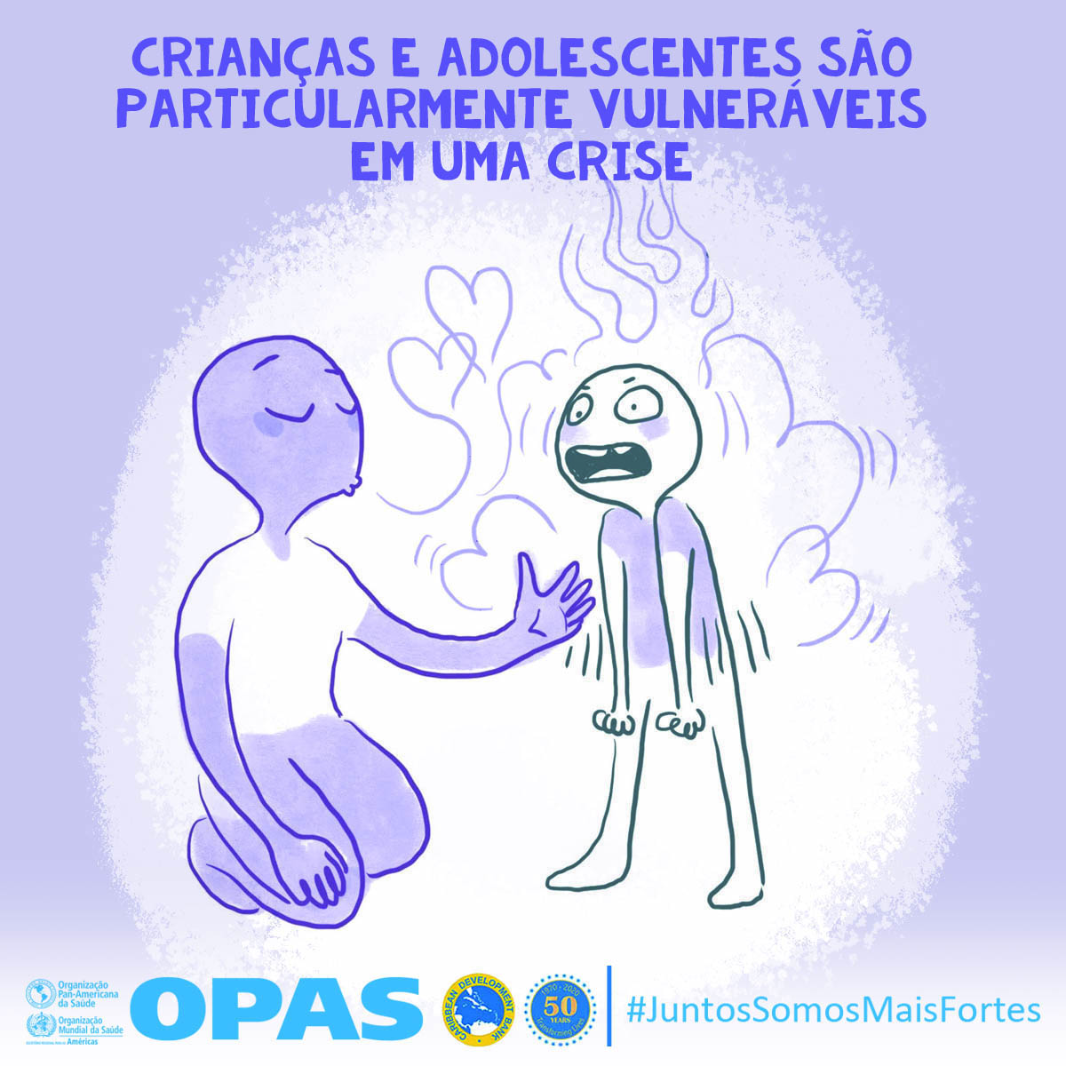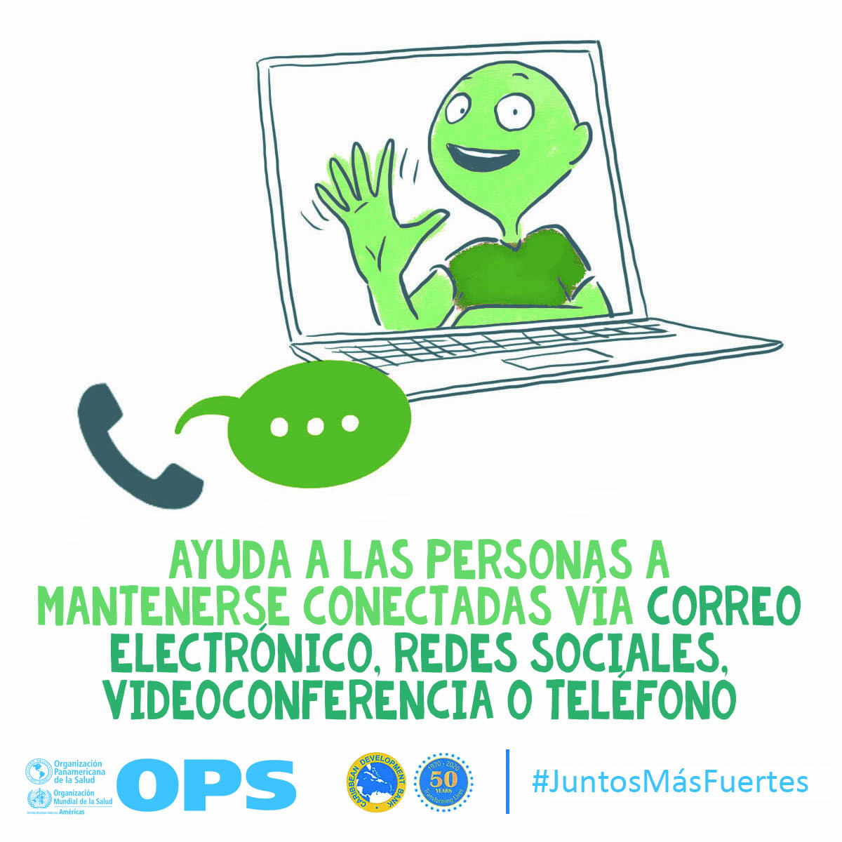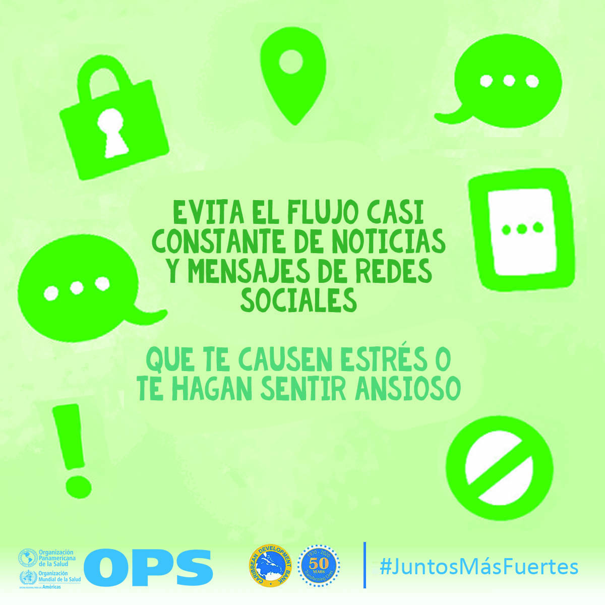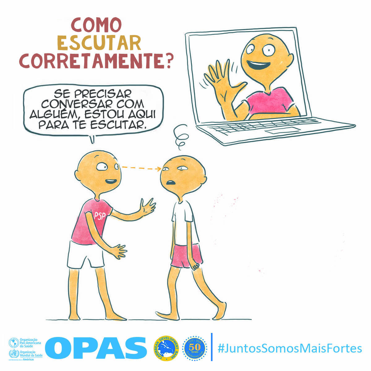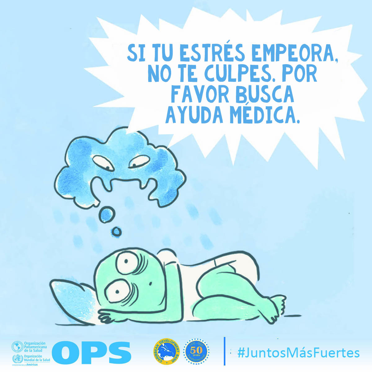 La OPS y el Banco de Desarrollo Caribeño (CBD, por sus siglas en inglés) lanzaron Juntos más fuertes para promover el bienestar mental y estrategias para afrontar el estrés durante la COVID-19 y la temporada de huracanes 2020. La campaña también tiene como objetivo reducir el estigma de buscar atención salud mental y apoyo psicosocial, y busca transmitir los principios básicos de la primera ayuda psicológica (PAP), un modo práctico y humano para ayudar y apoyar a personas en situaciones graves de crisis.