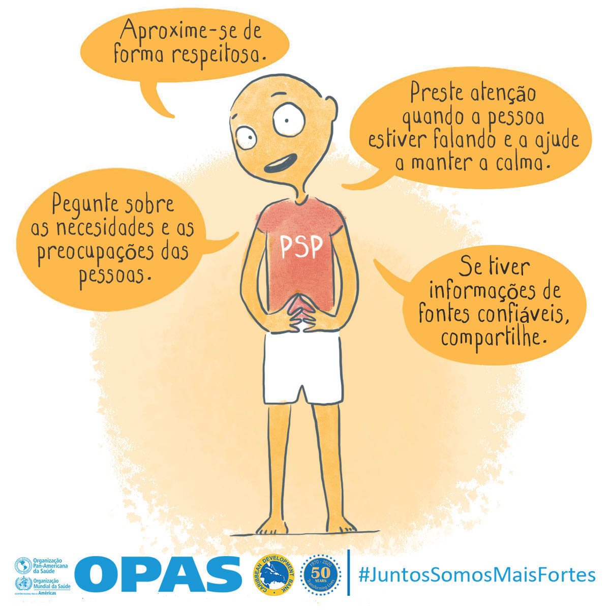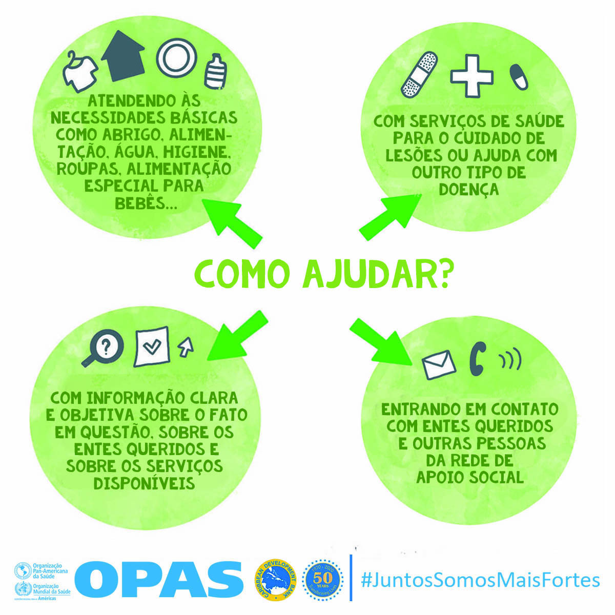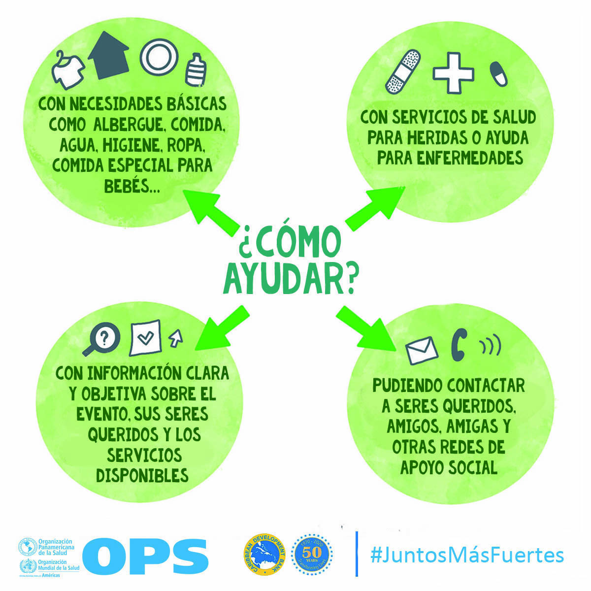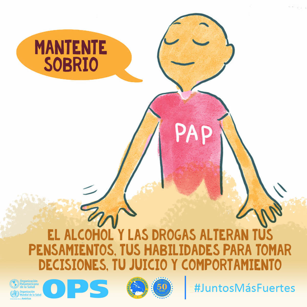 La OPS y el Banco de Desarrollo Caribeño (CBD, por sus siglas en inglés) lanzaron Juntos más fuertes para promover el bienestar mental y estrategias para afrontar el estrés durante la COVID-19 y la temporada de huracanes 2020. La campaña también tiene como objetivo reducir el estigma de buscar atención salud mental y apoyo psicosocial, y busca transmitir los principios básicos de la primera ayuda psicológica (PAP), un modo práctico y humano para ayudar y apoyar a personas en situaciones graves de crisis.