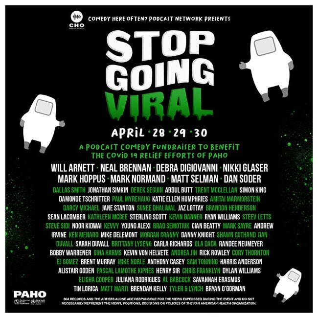 Talentosos comediantes se unieron durante tres consecutivos días (5 horas cada día) promoviendo la recolección de donaciones. Participaron: Nikki Glaser, Will Arnett, Mark Hoppus de Blink 182, Debra DiGiovanni, Dan Soder, Matt Selman, Mark Normand y Neil Brennan, entre tantos otros que agregaron sus voces a este esfuerzo conjunto para hacer que las audiencias de las redes sociales los identifiquen a todos como defensores de la vacunación, ayudando a la OPS a fortalecer la misión de la OPS de salvar vidas y reducir la propagación de enfermedades prevenibles por medio de la vacunación en todos los países y pueblos de las Américas.
