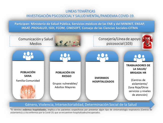 Equipos multidisciplinarios en cada una de las provincias, desarrollaron investigaciones e intervenciones, esencialmente a partir del trabajo con grupos vulnerables específicos y personas convalecientes del COVID-19.