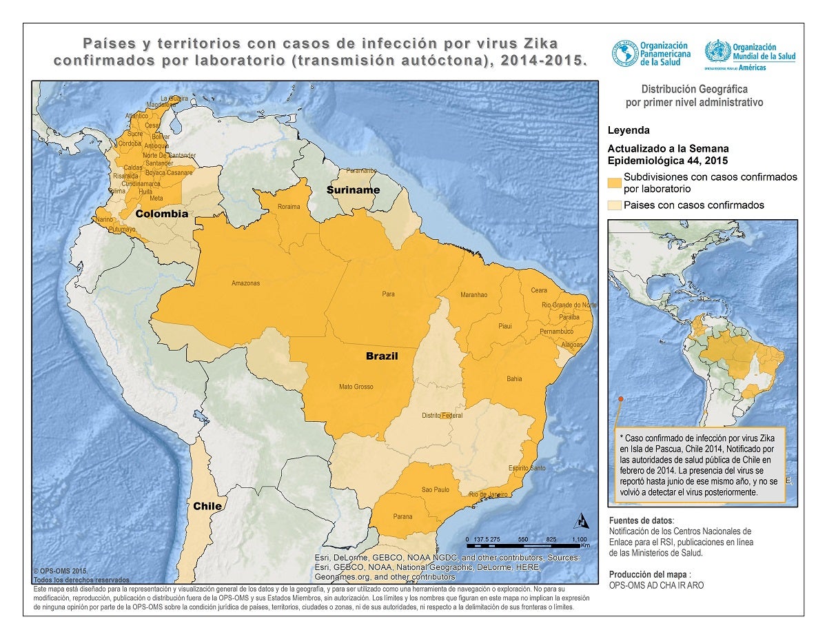 Países y territorios con transmisión autóctona de virus del zika. Semana Epidemiológica 44 - 2015