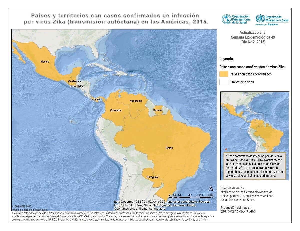 Países y territorios con transmisión autóctona de virus del zika. Semana Epidemiológica 49 - 2015