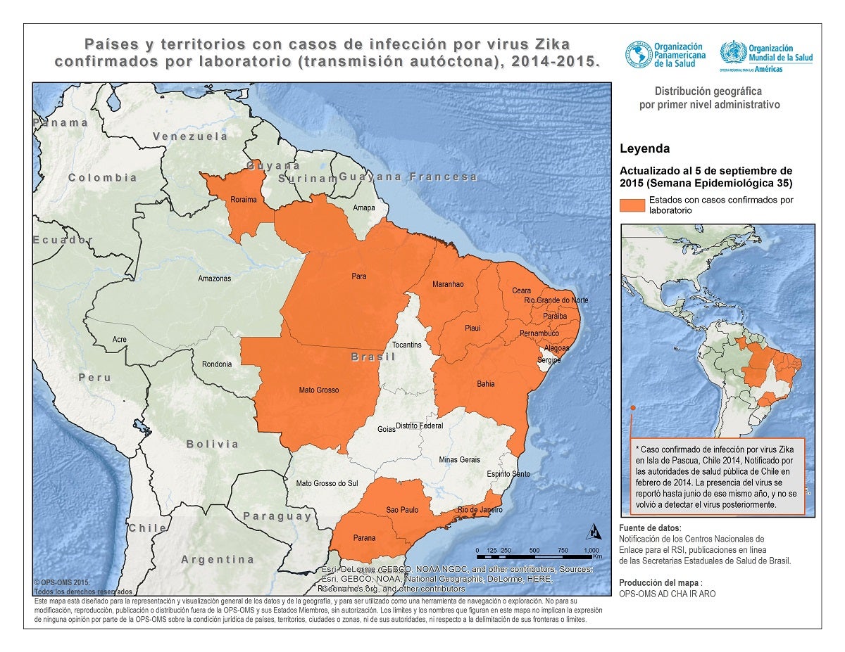 Países y territorios con transmisión autóctona- virus del zika. Semana Epidemiológica 35 - 2015