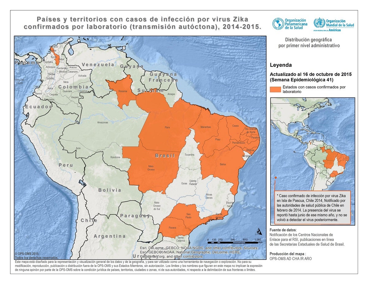 Países y territorios con transmisión autóctona de virus del zika. Semana Epidemiológica 41 - 2015