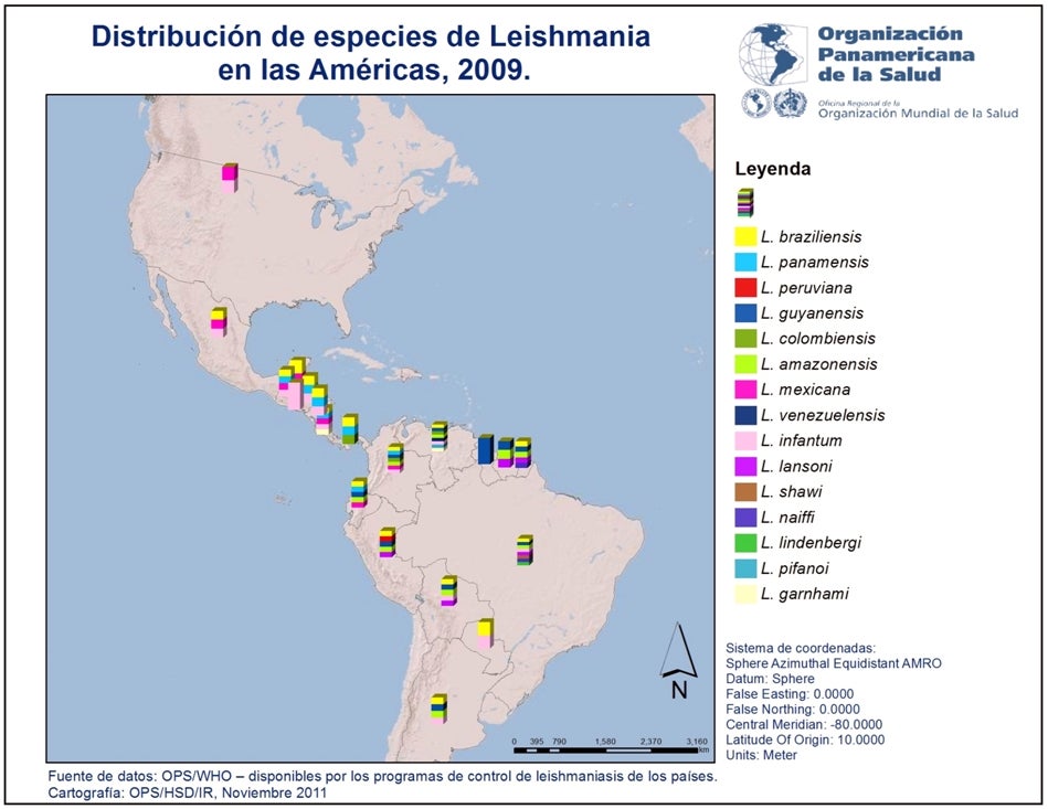 Distribución de casos de leishmaniasis cutánea y mucosa en las Américas 2006 a 2010; 2011 (Spanish only)