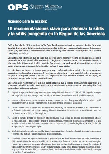 Acuerdo para la acción: 15 recomendaciones clave para eliminar la sífilis y la sífilis congénita en la Región de las Américas