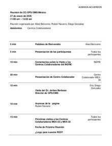Agenda de la Reunión de Centros Colaboradores en México del 14 de enero de 2025
