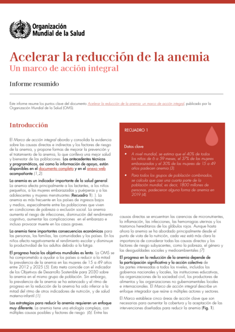 Acelerar la reducción de la anemia: un marco de acción integral: informe resumido